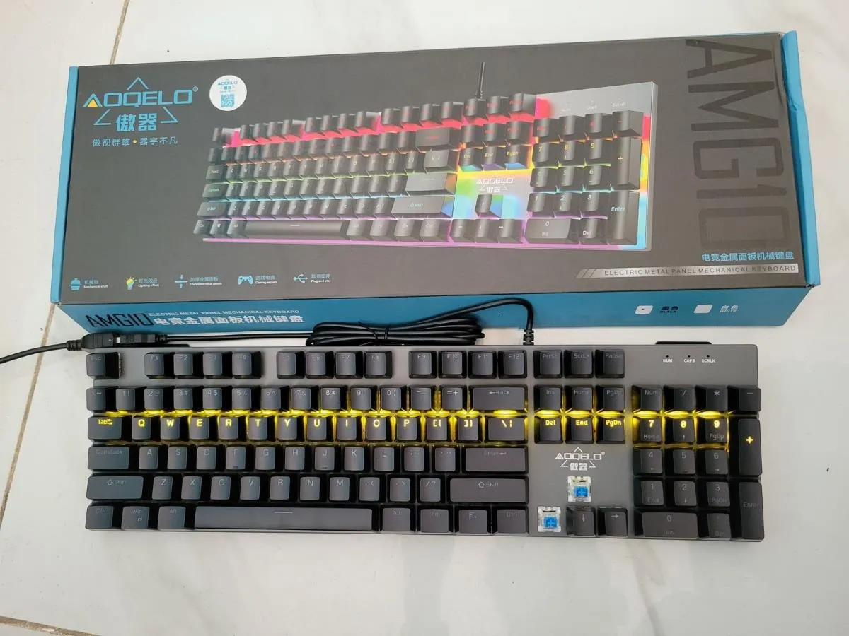 The Aoqelo AMG110 is a mechanical RGB gaming keyboard designed for users who enjoy tactile and clicky feedback. With blue mechanical switches, vibrant RGB lighting, and a durable build, it’s a great choice for gaming, typing, and everyday PC use.