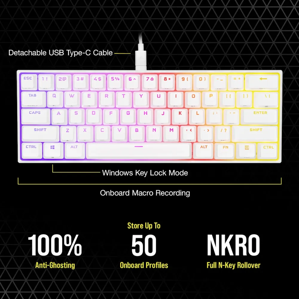 Corsair K65 RGB MINI 60% RGP0137 – Mechanical Gaming Keyboard (White)